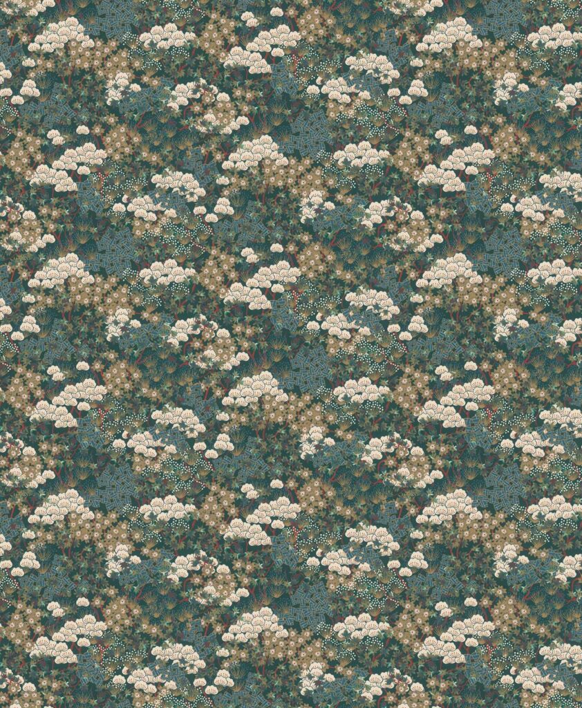 El papel para origami suele tener patrones coloridos con sofisticados efectos metálicos brillantes. YUZEN, que lleva el nombre de uno de los pintores japoneses más famosos de esta técnica, plasma este estilo artístico distintivo en la pared con combinaciones de colores bien combinadas.