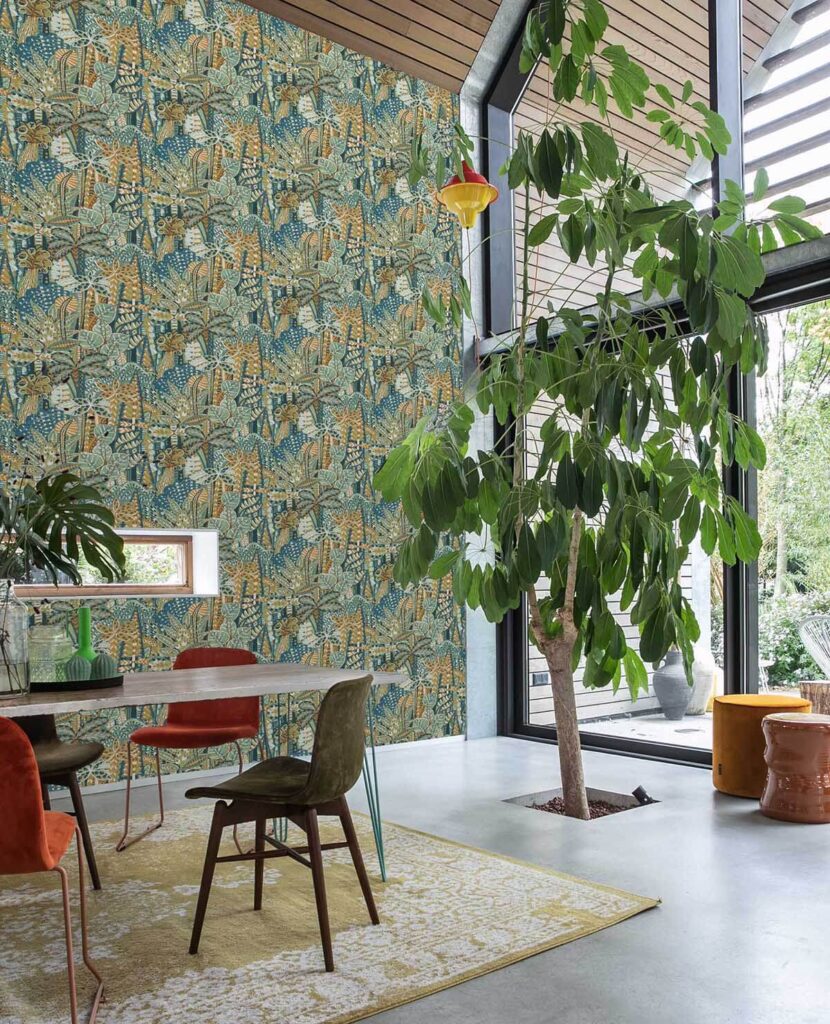 ste diseño vibrante se inspiró en la reserva de la selva tropical de Tafua, cerca del pueblo costero del mismo nombre: una mezcla de patrones y colores que te pondrán de buen humor. Aquí, se compuso y coloreó sutilmente y se creó una armonía que despierta todos tus sentidos. Palmeras de coco, helechos gigantes y follaje gigante en forma de abanico en un estilo de pintura ingenuamente lúdico se apiñan uno junto al otro.