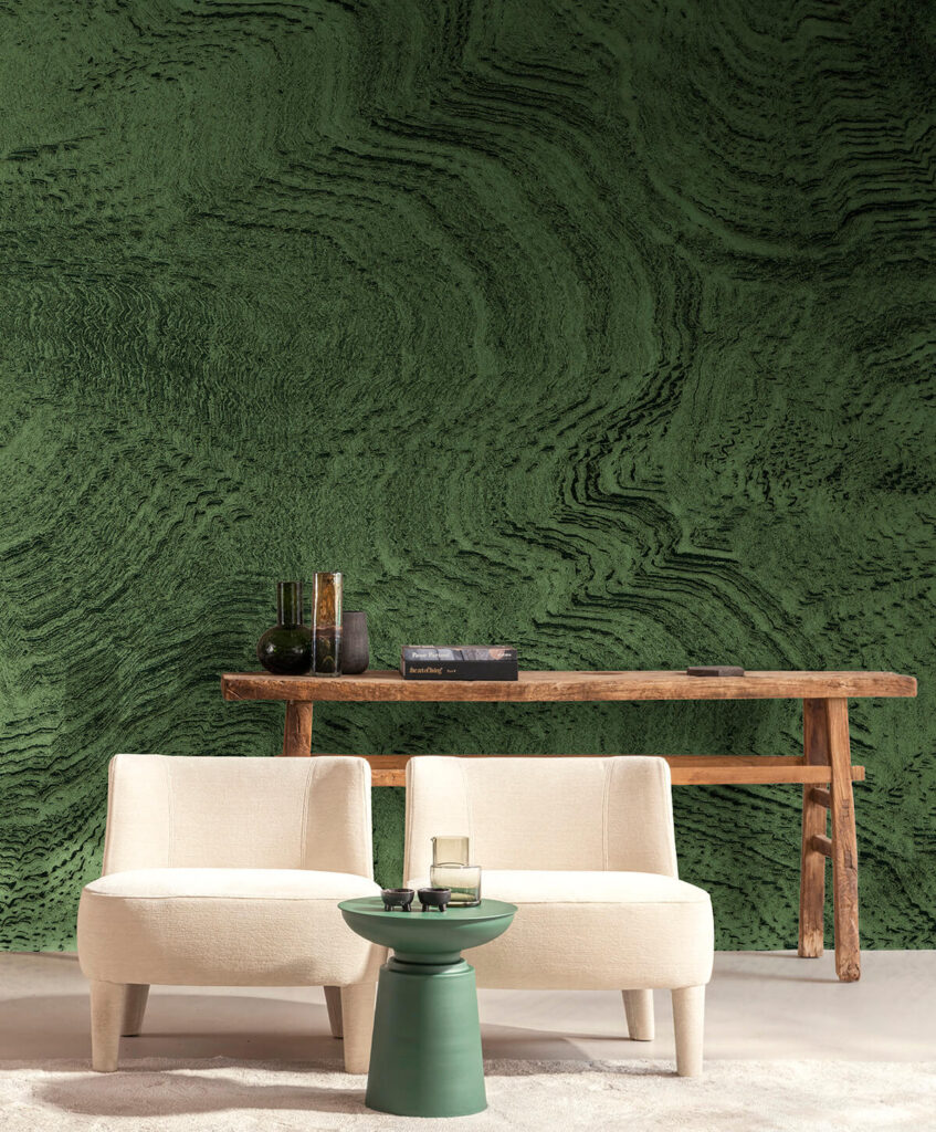 El equivalente al papel pintado del mismo nombre es este mural digital de gran formato con un degradado adicional integrado que recuerda a una mística incidencia de luz. En los colores Rusty Red, Natural Brown, Moss Green y Grey, la sección transversal de malaquita que se muestra se convierte en una declaración impresionante con un aura relajante.